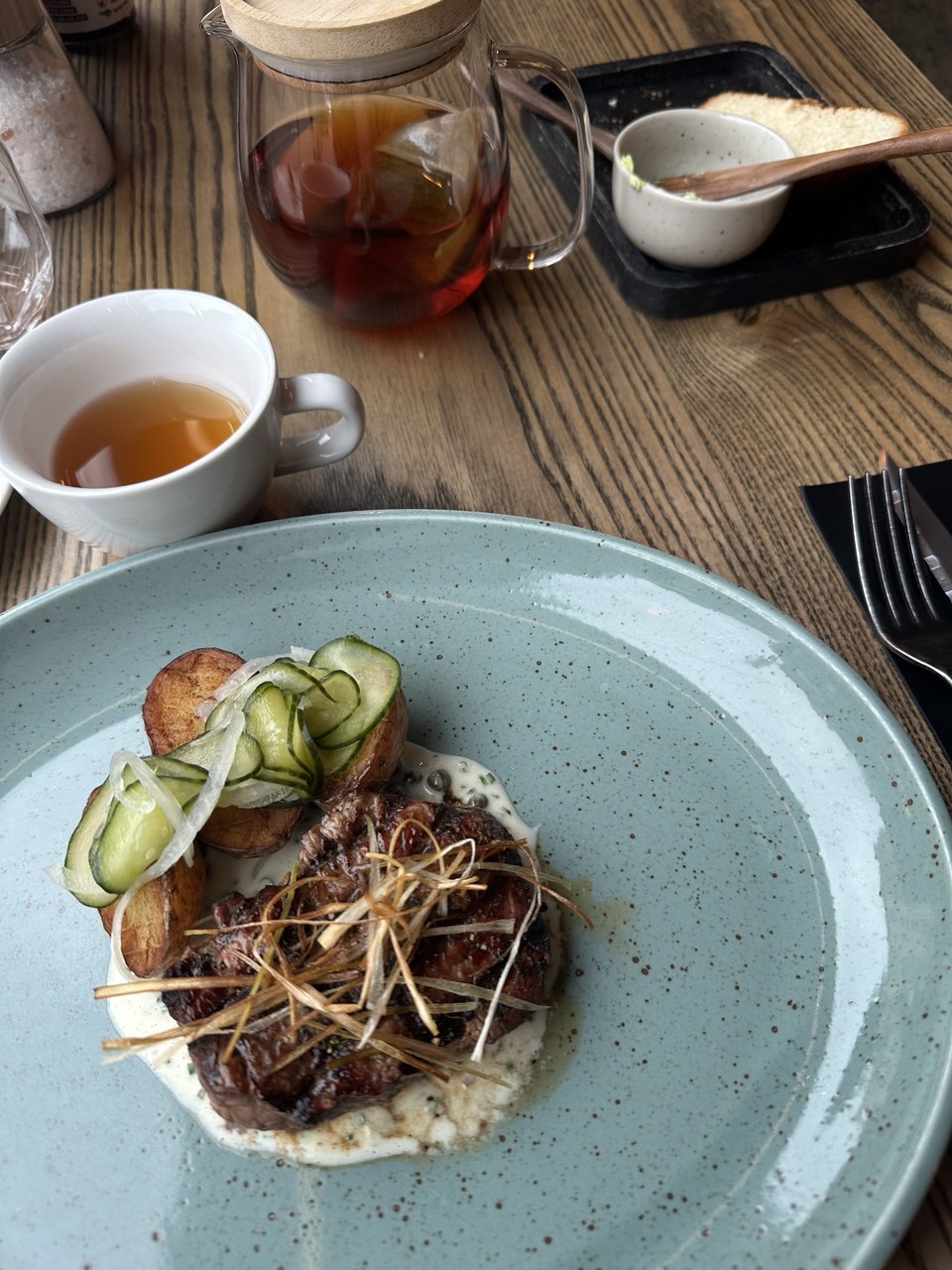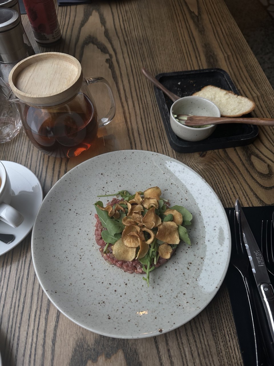 Наелась я конечно знатно. На 1 место однозначно сырные крокеты, на вкус как жареный сыр. ОБОЖАЮ ЖАРЕНЫЙ СЫР. 2 место - тартар. Хорошее мясо, ничего лишнего, приятное сочетание.Топинамбур для меня по вкусу был как картофельные чипсы. 3 место - сладкое. Сложно найти десерт который мне бы не понравился)) Очень вкусное вишневое варенье, не приторно сладкое, с цельными ягодками.