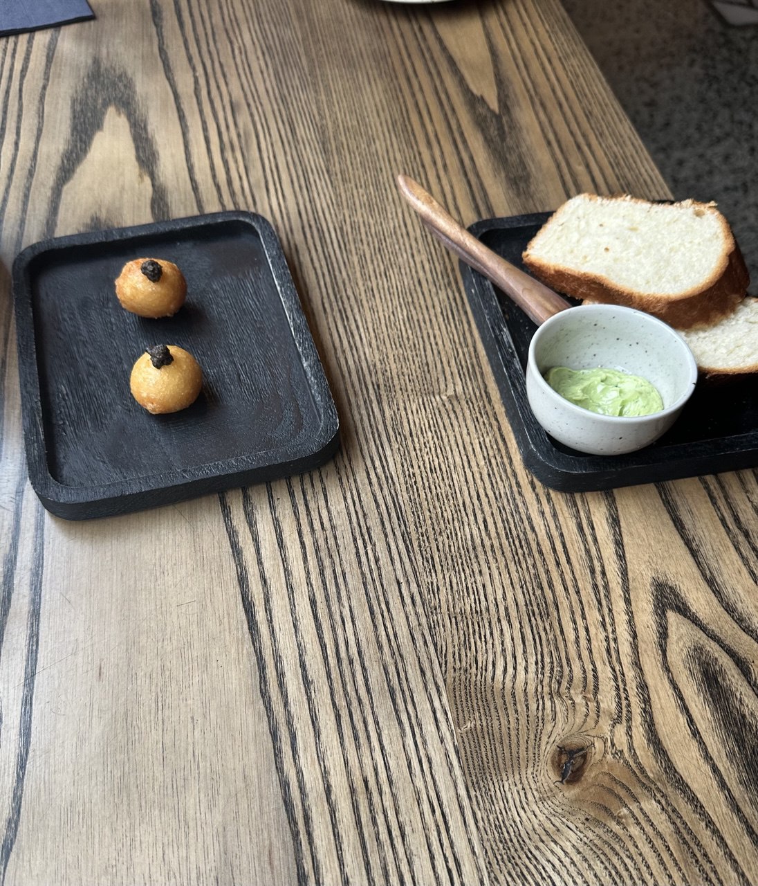 Еще было 2 комплимента от шефа сырный крокет с трюфелем и сорбет (ягодный, но что за ягода не разрбралась, возможно черная смородина)