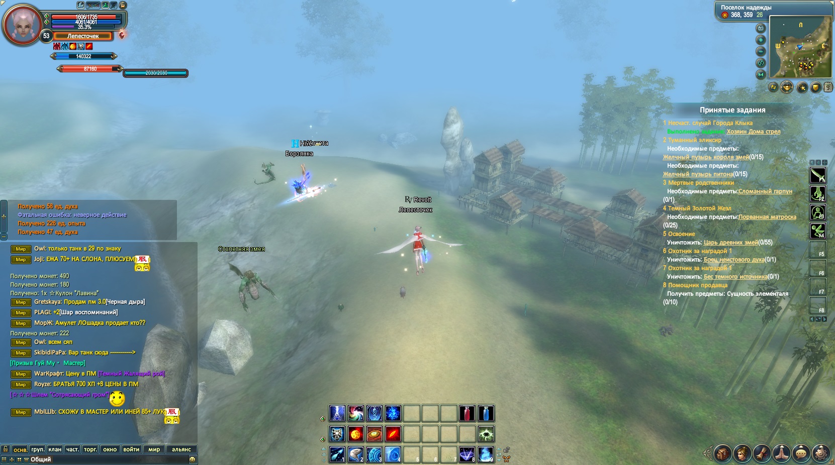 4. Подтверждающие скрины (наличие чата на скринax обязательно) - прикладываю (бот зависал на моменте подбора чужого лута, бил только аа + бил чужих мобов, на приглашение в пати не отвечал).