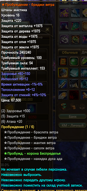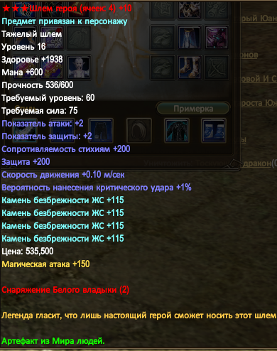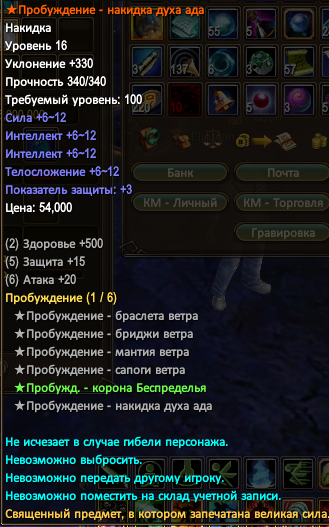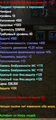 далее по шмоту и статам с него