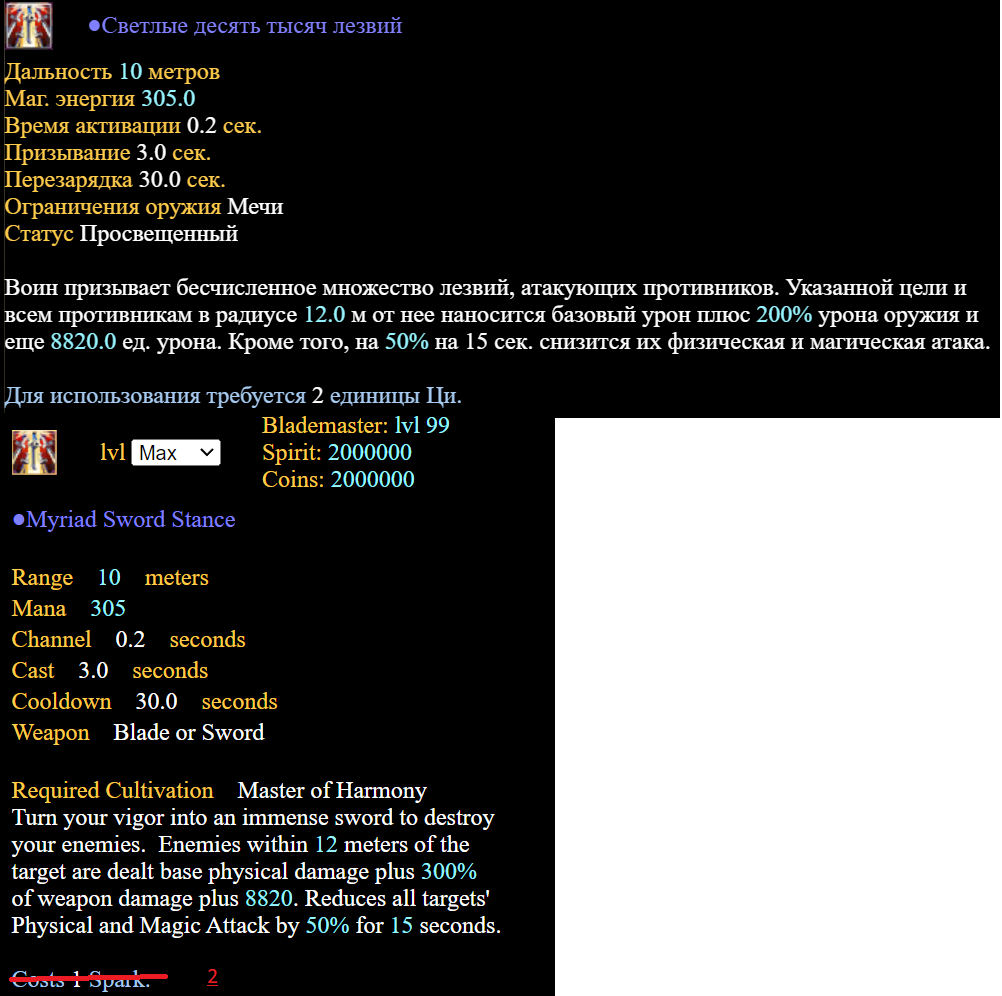 И последний, четвертый скилл: Светлые десять тысяч лезвий