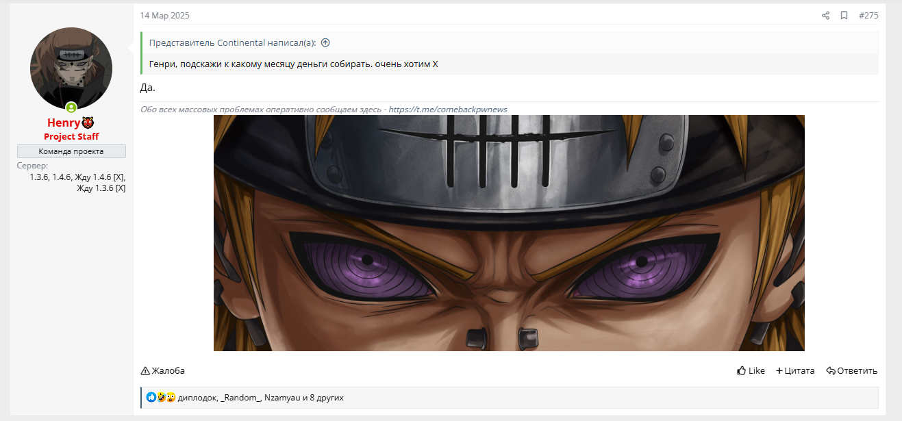 А как же баланс во вселенной? Там тоже не скрывают про камбек)Предупреждение для всех. Подобные сообщения я буду расценивать как нарушение п. 10.1.