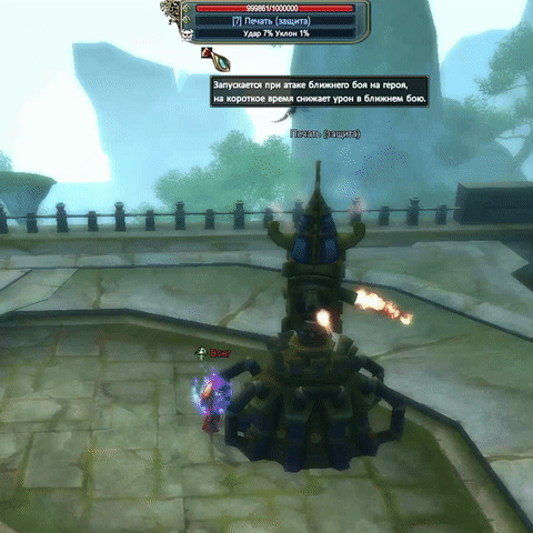 "Данный баф запускается при атаке ближнего боя на героя, на короткое время снижает урон в ближнем бою."