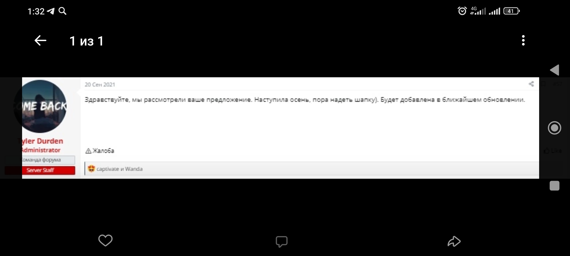 Как раз тут они тебе тооочно ответят!Хотелось бы услышать ответ администрацииПосмотреть вложение 42054Посмотреть вложение 42053Посмотреть вложение 42052Посмотреть вложение 42051