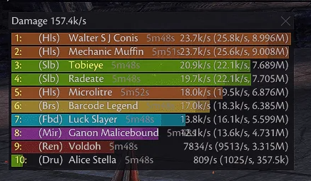 Предлагаю добавить в игру интерфейс DPS-метра, который будет отображать урон по монстрам (в частности — по боссам и текущей цели). Аналогом можно считать arcdps из игры Guild Wars 2 (изображение ниже).