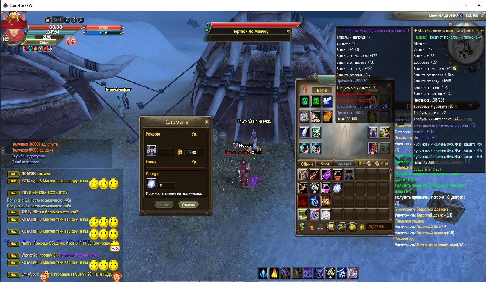WhySoSerious Завел фанатов Игрок ComebackPW Регистрация 18 Мар 2022 Сообщения 110 Реакции 461 Баллы 150 Сервер 1.3.6 10 Дек 2022 #1 Ник ChicK Почините пожалуйста слом вещей фиолетовых с 99-109 данжей 12 уровня При сломе пишет "ошибка запроса" PS: портной 8 ур. Вложения Безымянный.jpg 626.9 KB · Просмотры: 82