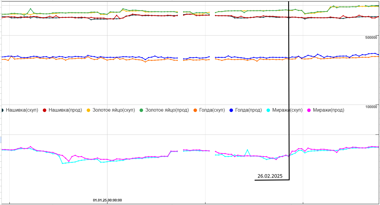 С 26.02 миражи поднялись, далее голда, яйца и янтарки.