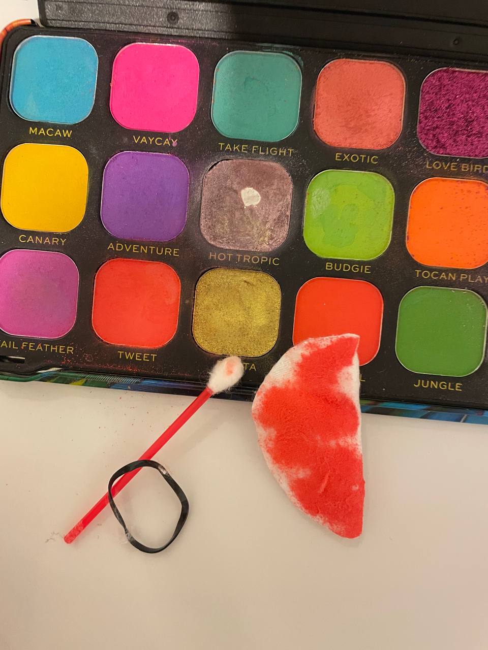 Материалы: крышечка из-под чипсов, зубочистки, скотч, маркер, пелена, подсветка от гирлянды (которую надо бы уже убрать)
