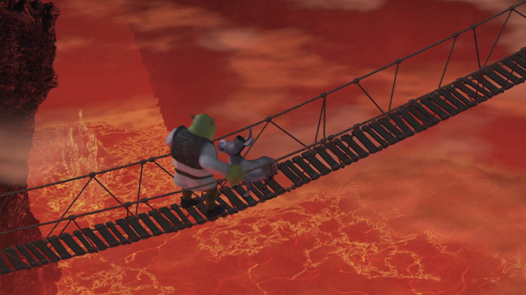 ещё хочу драку на мосту, над которым мы летали, чисто без полётов и без бега, пешком, но там дырка в полу, в которую проваливаешься в пропасть ((