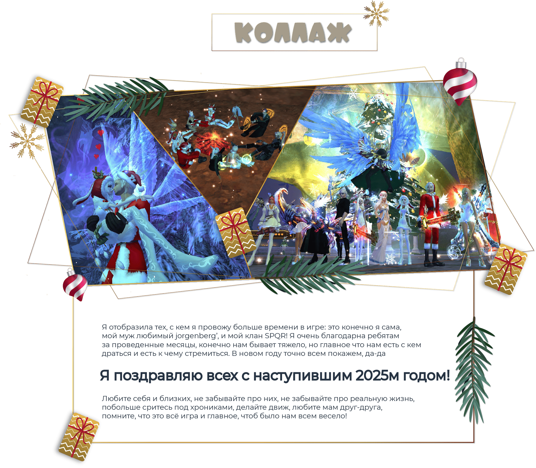 • Составьте "новогоднюю открытку" с поздравлениями для сообщества, используя скриншоты, творчество и ваш креатив.