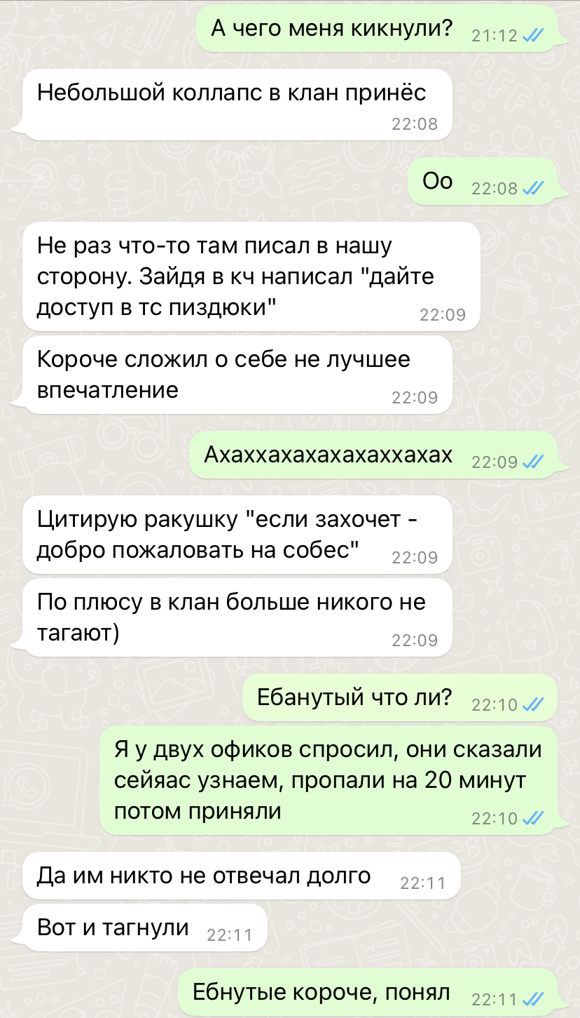 Зачитать репчик чтобы приняли в клан и скрины- у тебя не вяжется чел ну то есть опять пиздишь