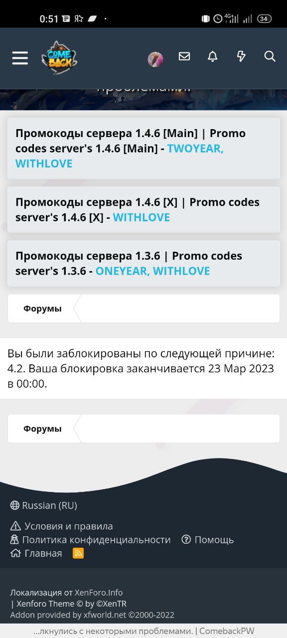 • Промокоды сервера 1.4.6 Main | Promo codes server's 1.4.6 Main - COMEBACK2025